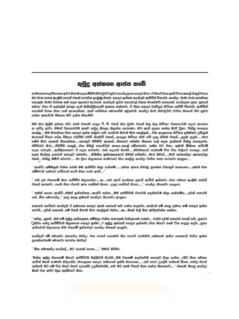 Appa wal katha, ආප්ප කතා. Sinhala wal katha intro video story is next day.! The largest wal katha & wela katha collection. කුමුදු අක්කගේ ආප්ප කඩේ 1 (ආප්ප කතාවක් ) කතාවේ සම්පුර්ණ ගෞරවය එහි මුල් රචකයාට හිමිවේ. Wal katha ammata hukana katha sinhalen aluth wal katha wal katha pdf download wela katha sinhala.